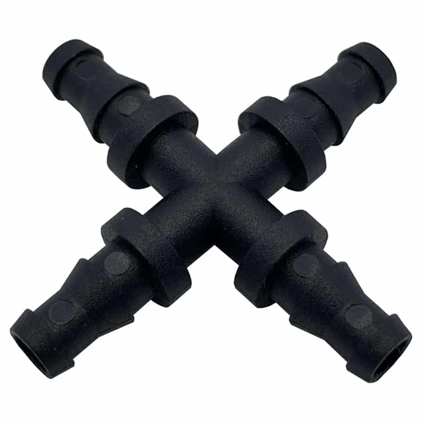 Крестообразный соединитель «AutoPot» 4×9 мм. Обеспечивает водонепроницаемое соединение поливных шлангов.