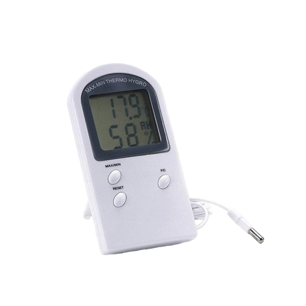 Прибор с проводом и датчиком для измерения температуры и влажности.