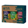 В набор входят минеральные удобрения «Terra Aquatica TriPart Flora Micro» (500 мл), удобрения для стимулирования роста «Terra Aquatica TriPart Flora Grow» (500 мл), удобрения для стимулирования цветения «Terra Aquatica TriPart Flora Bloom» (500 мл) и пакет порошка для понижения pH воды. При совместном использовании они ухаживают за растениями на протяжении всего цикла роста: